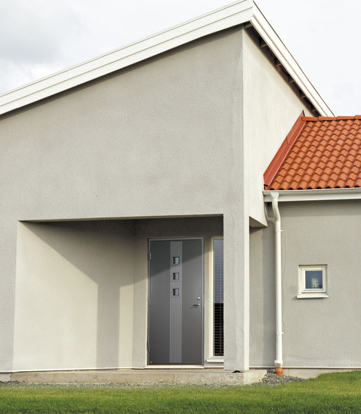 Övrigt: Dekorplattan är målad i en ljusare kulör än dörren