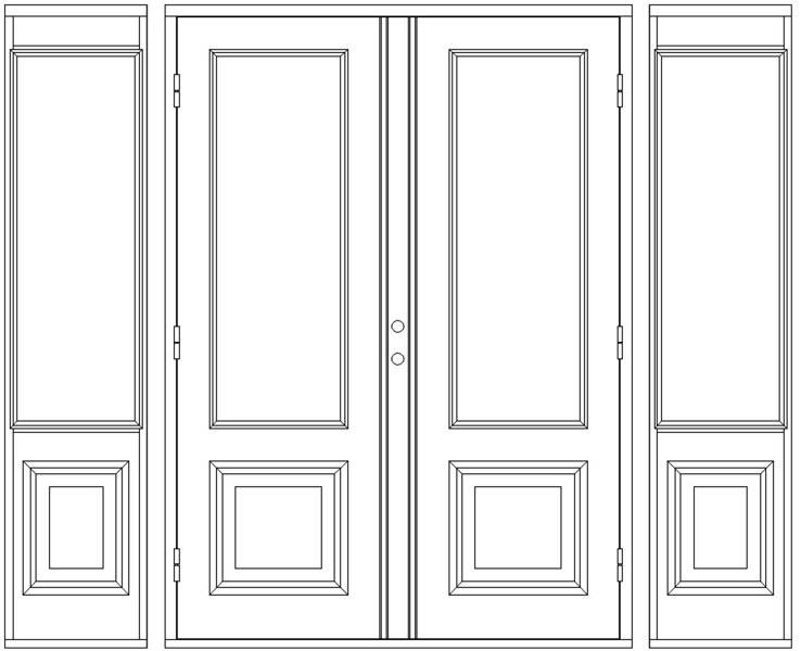 Här blev det ett helt parti, pardörr och så sidoljus par varje sida. Dörren grundar sig på Brenäs men utan spröjs och något lägre bröstning.